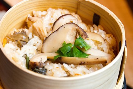 松茸是日本秋季珍貴的食材,被譽為「香氣之王」。以新鮮松茸與高湯炊煮的松茸飯,兼具松茸高雅清淡的香氣,與高湯的濃郁味道,吃得到米粒吸飽菇香的層次。這道料理象徵秋天豐收與自然恩惠,許多旅館與懷石料理店會在紅葉季推出「松茸御膳」作為限定料理。