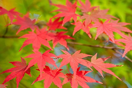 最具代表性的紅葉種類,也是「紅葉(もみじ)」的原型。葉形呈掌狀,顏色由橙紅至深紅。京都、奈良等古都的寺院庭園中常見楓樹,尤其在嵐山與永觀堂一帶最為壯觀。