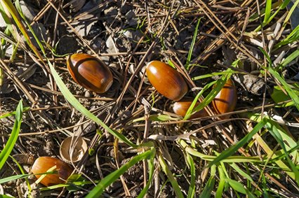 雖然外觀不是鮮紅色,但呈現溫暖的褐橘色,是森林中低調的秋意代表。落葉後地面鋪滿橡實與枯葉,象徵豐收與季節的轉換。