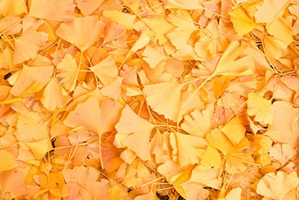 金黃色的葉子是秋天的另一種象徵。當街道兩旁的銀杏葉灑滿地面時,日本人稱之為「黄金のトンネル(金色隧道)」。東京的外苑前與大阪御堂筋是著名的銀杏大道。