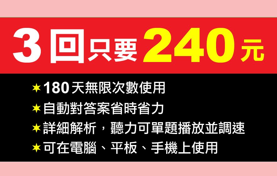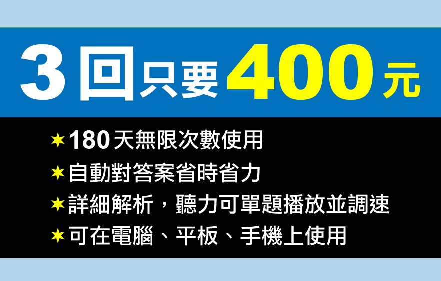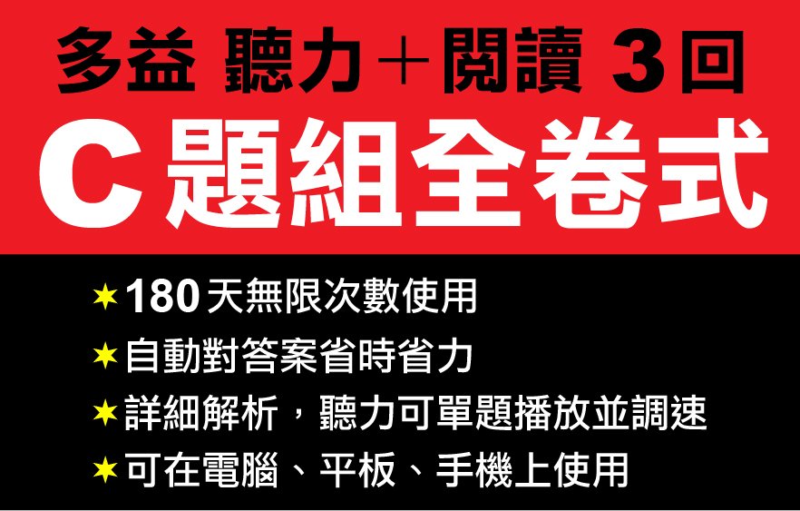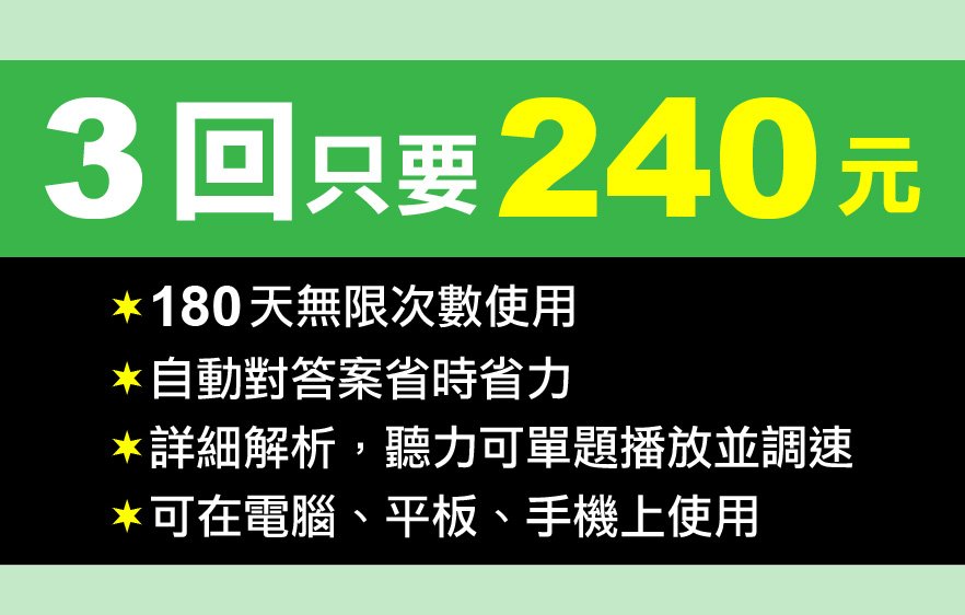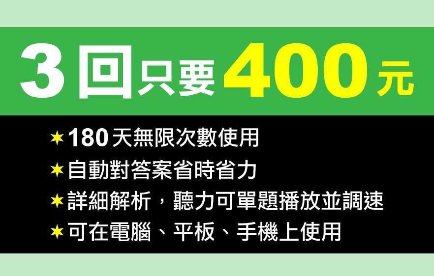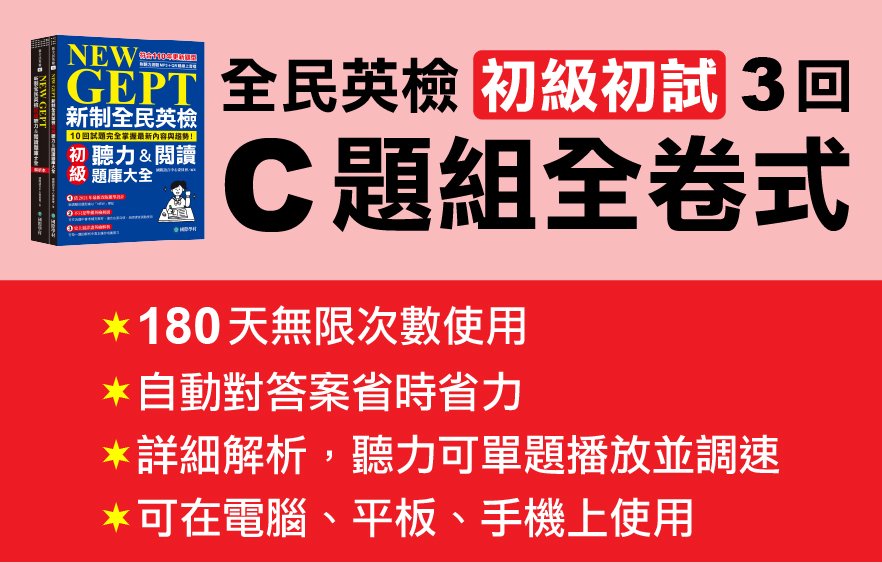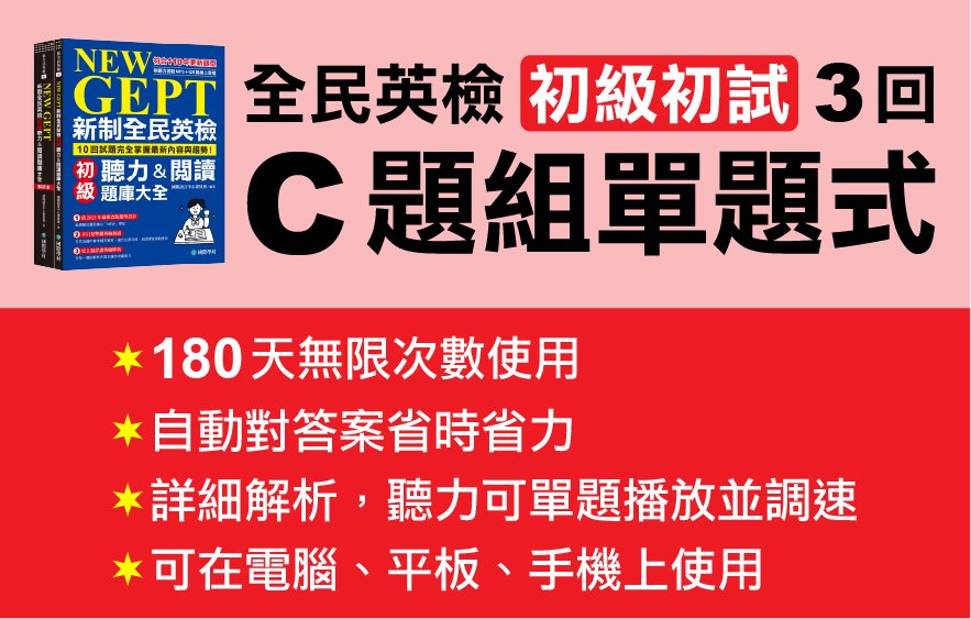 (付費商品!單題式+全卷式)3回 NEW GEPT 新全民英檢【初級】聽力+閱讀 題庫大全 C題組