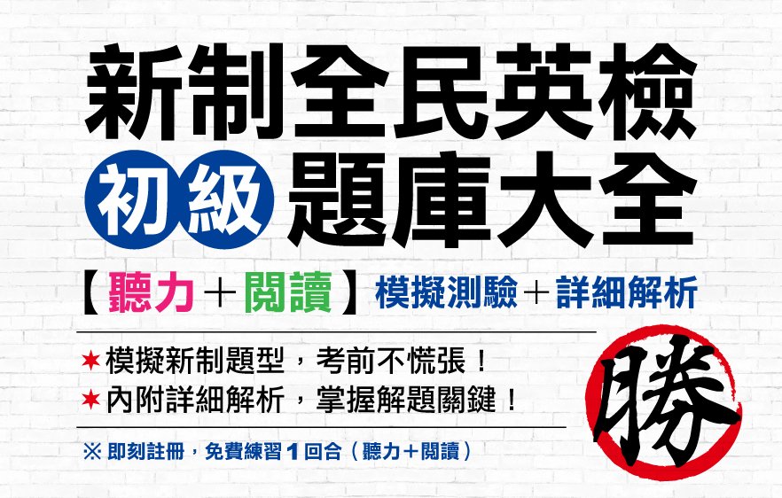 (付費商品!單題式+全卷式)3回 NEW GEPT 新全民英檢【初級】聽力+閱讀 題庫大全 A題組