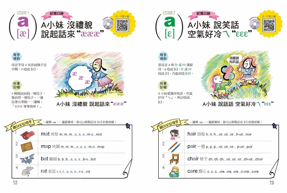 每個單元都有DORINA老師親手畫的情境插圖,配合記憶口訣反覆練習,有效加深口訣記憶,學習發音更加有趣!