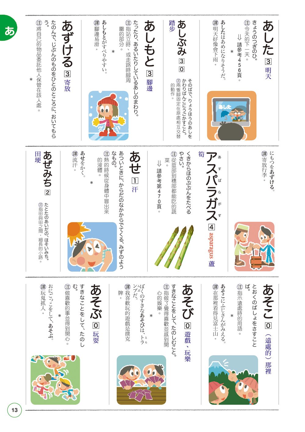 如果家長們若不擅長日語或是不會日語也不用擔心,本書中所有單字字義、說明加注、例句釋義皆附有日中對照,一起看、一起查,可以讓你跟孩子能夠攜手共學,並增加親子間的情感。伴隨著小孩一起學日語,相信你也會因此而日文功力大增,一舉數得。